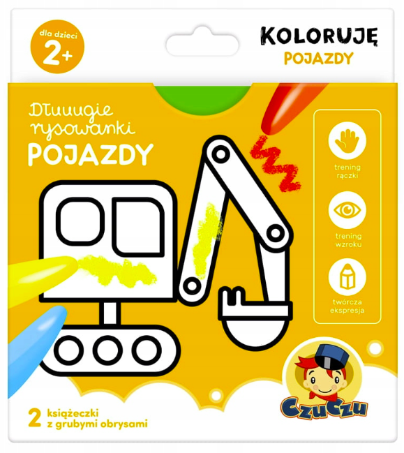 Kolorowa i rozwijająca książeczka dla najmłodszych miłośników pojazdów! Idealna do pierwszych prób rysowania i kolorowania 🖍️😊